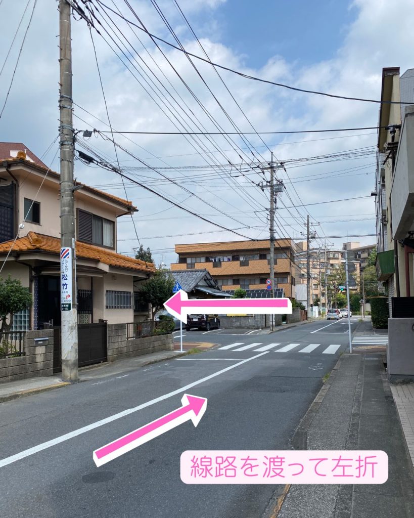 踏み切りを渡ってすぐ
